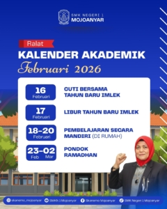 Sehubungan dengan telah terbitnya SEB 3 Menteri tentang Pembelajaran di Bulan Ramadhan tahun 1447 Hijriah / 2026 Masehi. Terdapat ralat pada kalender akademik bulan Februari. Mohon untuk mengacu pada info yang telah diperbarui.