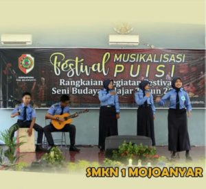 Musikalisasi Puisi: Siswa-siswi perwakilan SMK Negeri 1 Mojoanyar tampil dalam perhelatan Festival Musikalisasi Puisi tingkat pelajar se-Kabupaten Mojokerto Selasa, 10 Maret 2020 di Aula Kantor Disbudpora Kabupaten Mojokerto. Walhasil SMK Negeri 1 Mojoanyar menyabet Juara Harapan Terbaik . #disiplin tangguh.